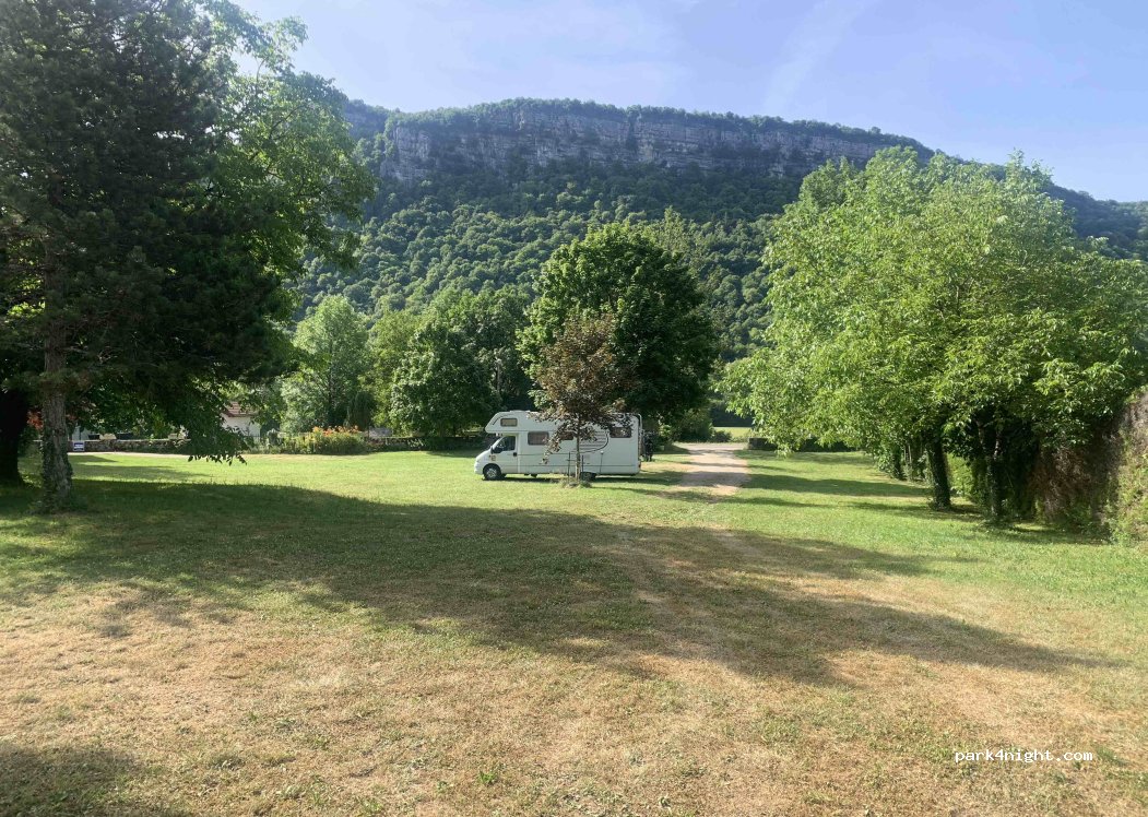 Nuit au calme avec terrain très sympa, on entend légèrement les voitures mais pas dérangeant. La dame très sympa passe récupérer les 5€ pour la nuit sur la matin. il y a une très jolie balade dans la forêt à faire au dessus du château du village.