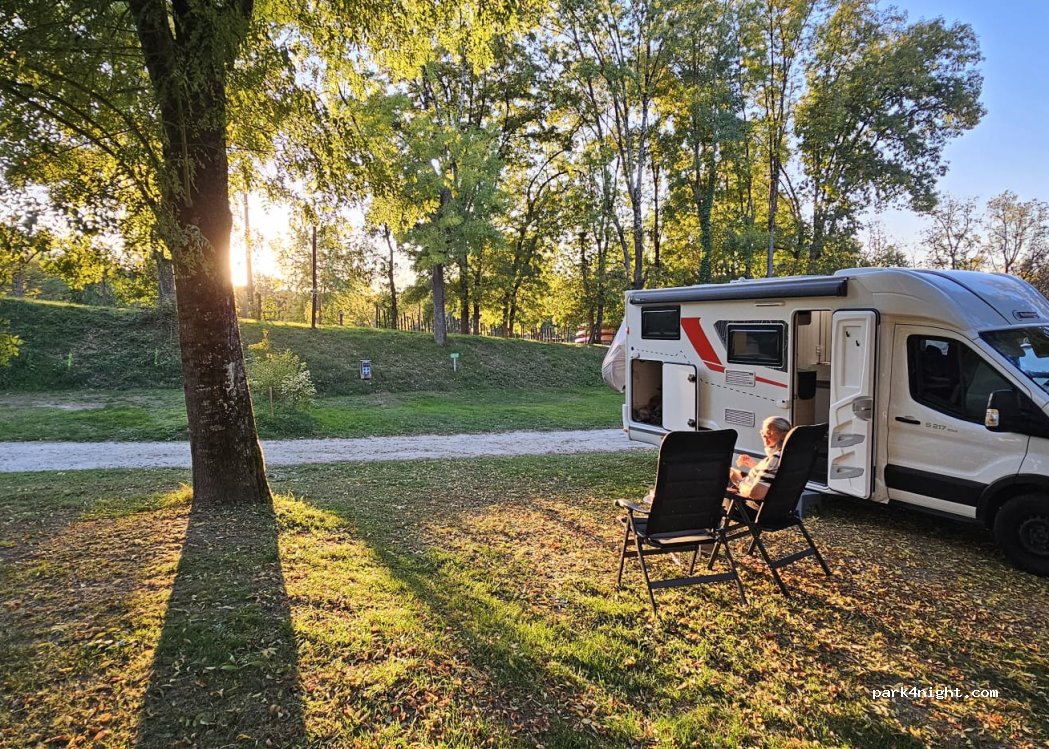 Camping sympa et ombragé. Attention à 7,50 €, pas de toilette et pas de douche (fermés à clés) juste le droit d'une halte au camping, pas d'aire de services.