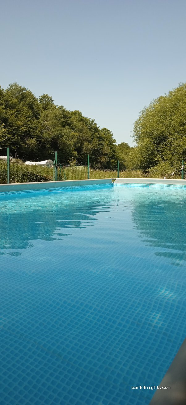 Nice and quite farm campsite. perfect for children (farm animals, swimming pool, trampoline, playground...) We ate the meal on Sunday evening, very tasty! regional products for sale. Every day 4 p.m. is goat milking for the children. Unfortunately no way to dispose gray water( Except you have a mobile grey water tank). But we warmly recommend this campsite!