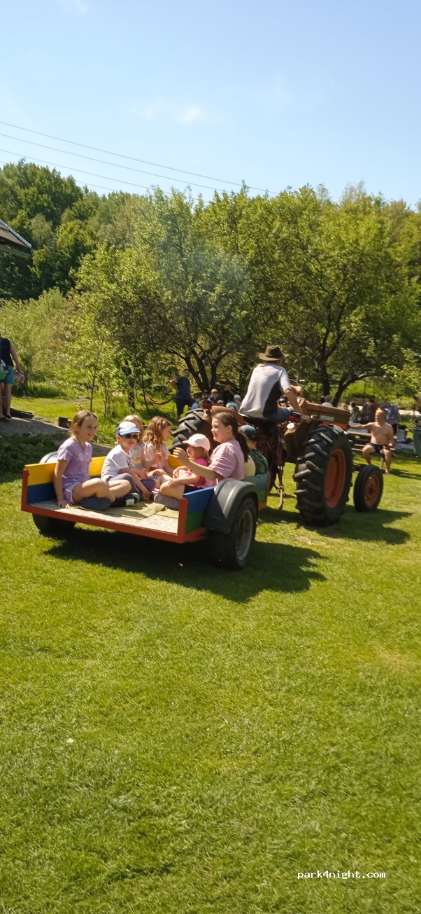 Le prix comprend l'utilisation de la piscine, des toilettes et des douches, la possibilité de remplir votre réservoir d'eau et de vider vos toilettes chimiques, ainsi que des promenades à poney pour les enfants.