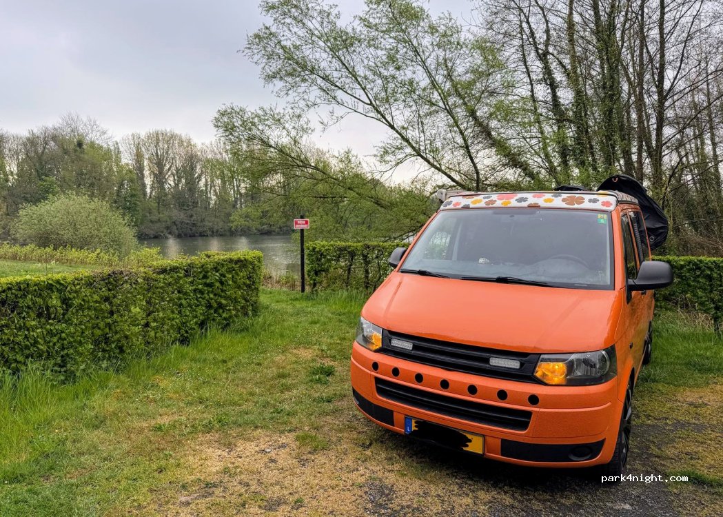 Endroit au calme, à côte du château du village, et juste en face des étangs, par contre pas de borne. Idéal pour passer une nuit, ou s'arrêter pour se reposer, et profiter du calme des alentours.