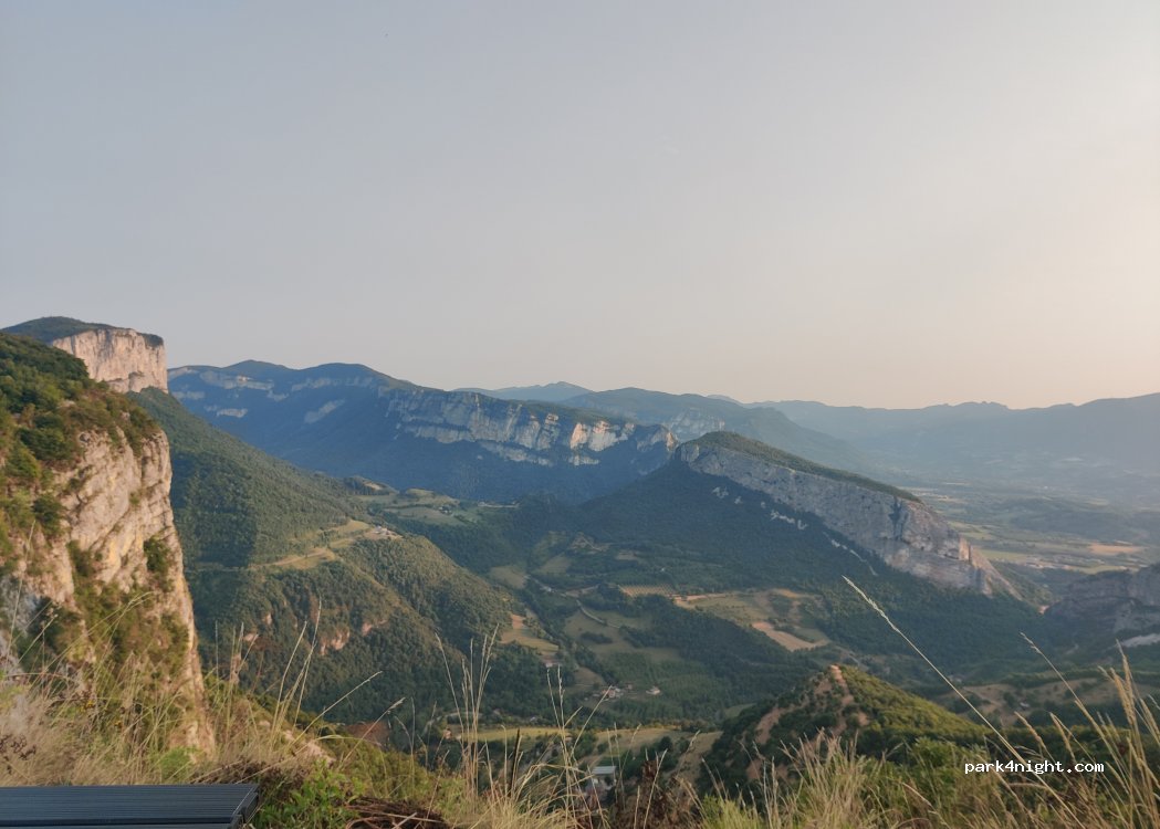 Terrain sous les arbres vraiment top en pleine chaleur ! Passé une nuit au calme sans vue mais il faut monter 10m pour avoir le bord de falaise avec une vue incroyable. La route depuis pont en royans est grandiose