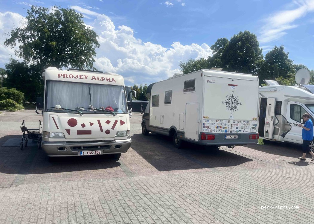 Parking exorbitant. Nous y sommes allée juste pour le plein d'eau et vidange wc. Prix exorbitant Car service inexistant en Pologne. 20 zlt pour eau. 20 zlt pour wc que l'on doit vider dans la douche. Super pour ceux qui veulent s'en servir.