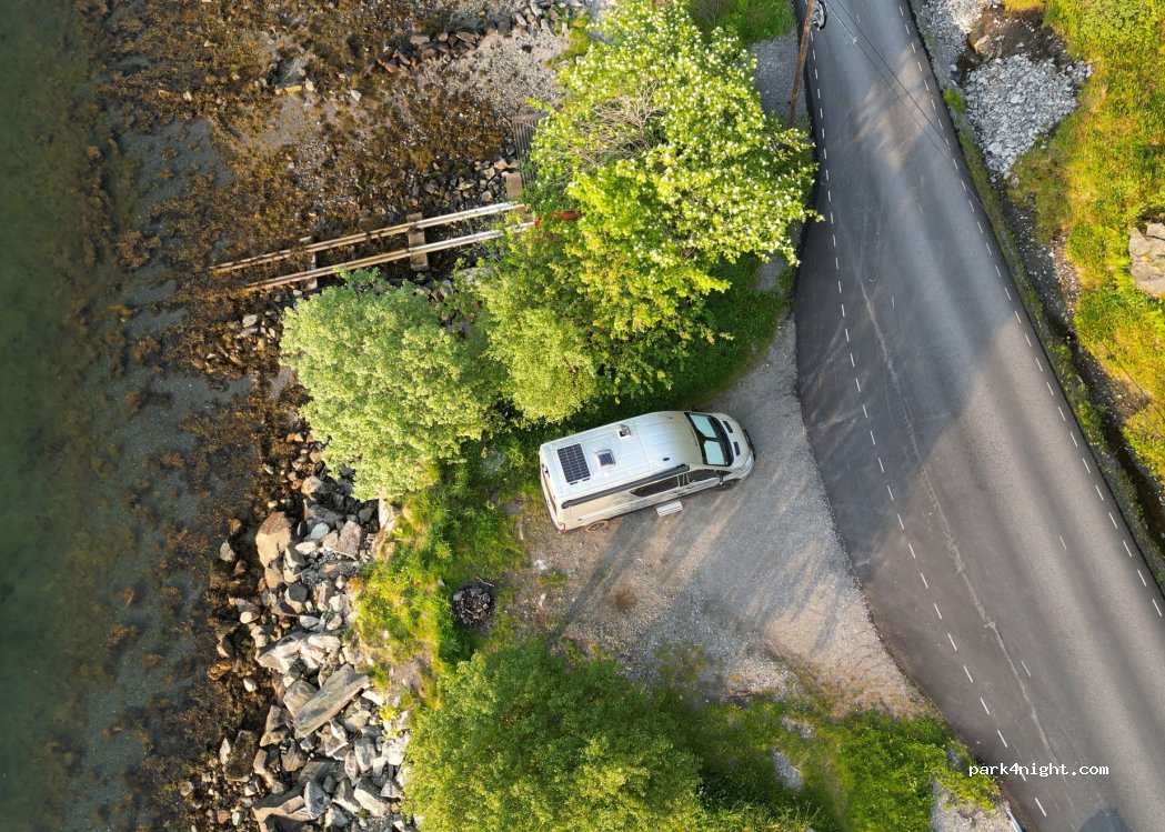 Absolutly amazing spot! Gravel parking just by the water. Nice beach where you can go for a swim. Fantastic view, nice and calm place.