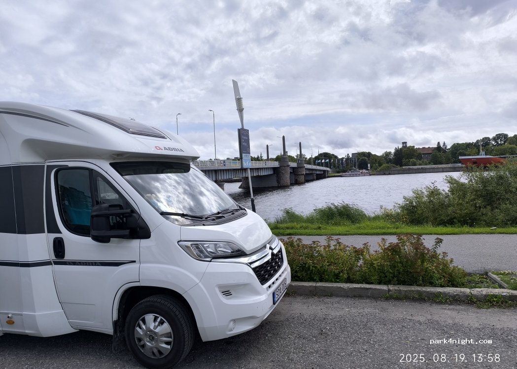 Quiet overnight free safe stay by the water. It's just a parking lot with no amenities but walking distance to city center and safe.