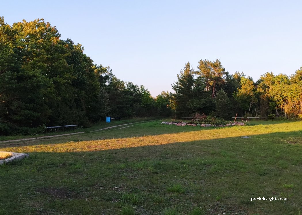 Place behind the place on the beach, protected from the wind and on a meadow from view. Barbecue area, dry toilets etc. Available.