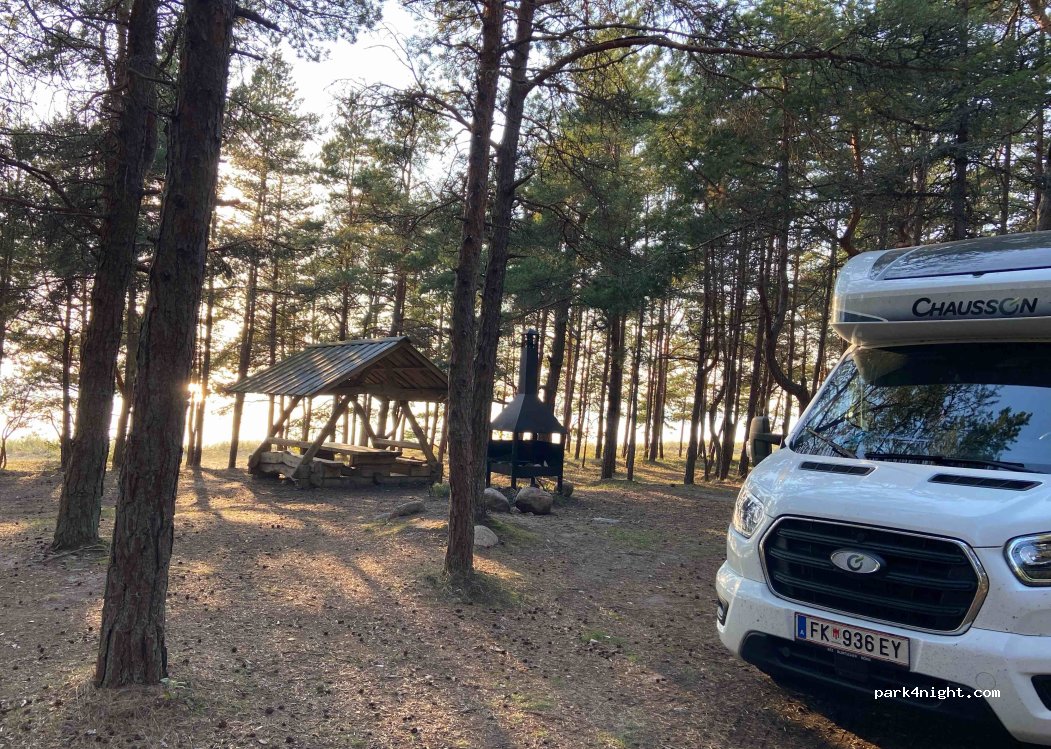 RMK Platz direkt am Meer mit Grillplatz. Straße zu den Plätzen etwas holperig und eng. Für Camper-Vans kein Problem und mehrere Stellplätze.