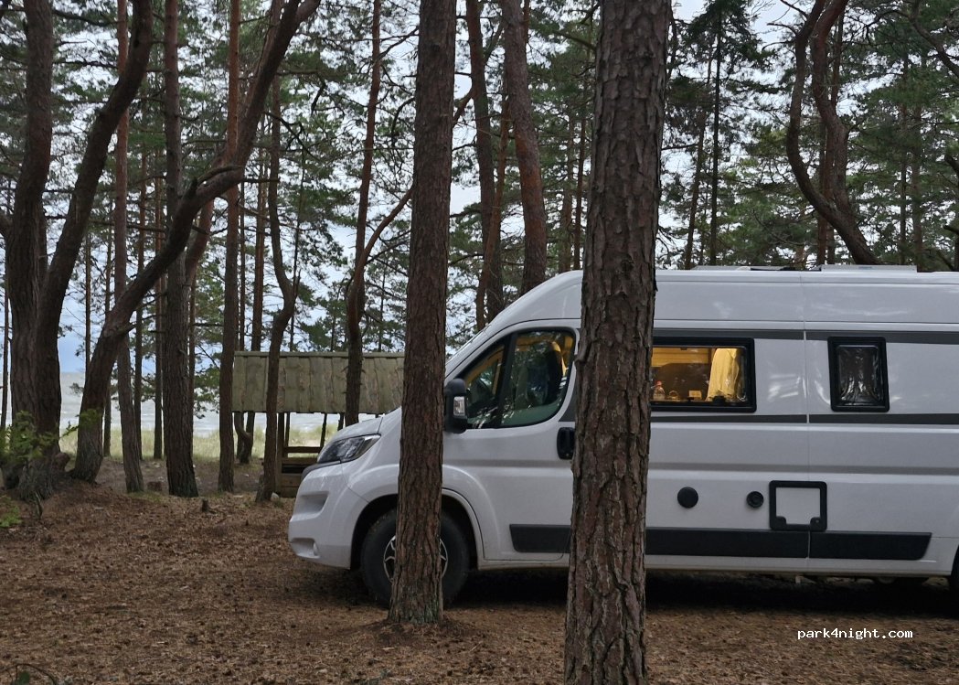 Viele Parkmöglichkeiten mit Grills unter den Bäumen. Ich habe mich nahe am Strand am letzten Grill hingestellt (Mit Van/Transporter problemlos möglich). Der Boden ist leicht sandig. Jedoch so fest, dass man sich nicht festfährt. Es waren einige Camper da. Doch durch die größe hatte jeder seine Ruhe. Bis auf das Meerestauschen und den Wind absolut still.