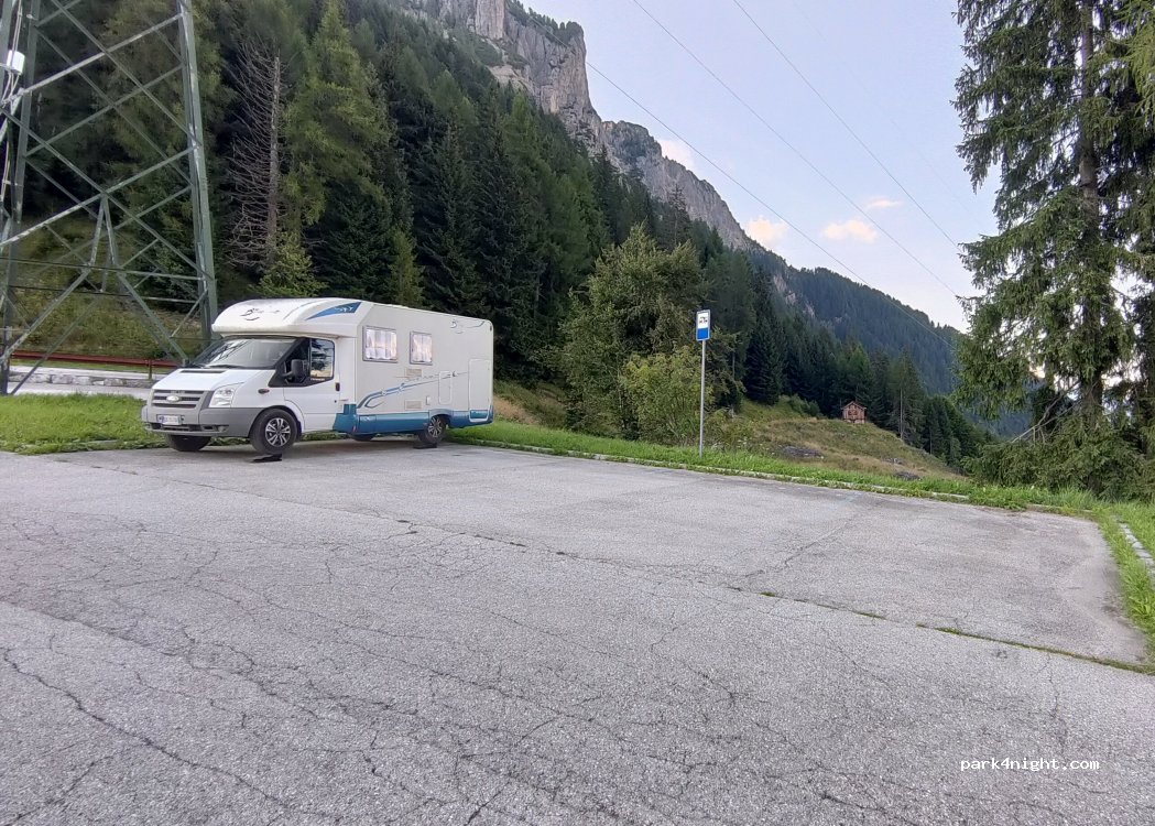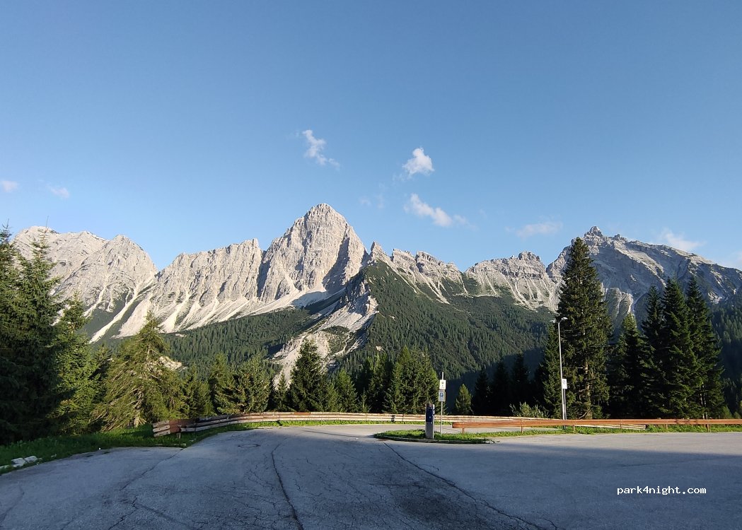 Asphaltierter Parkplatz zum Dolomiti Museum MMM am Monte Rite. Fantastische Aussicht! Parkplatz am Passo Cibiana SP347 hinter dem Rifugio Remauro. Ausgangspunkt zur Wanderung bzw. Bus transfer zum MMM Dolomiti.