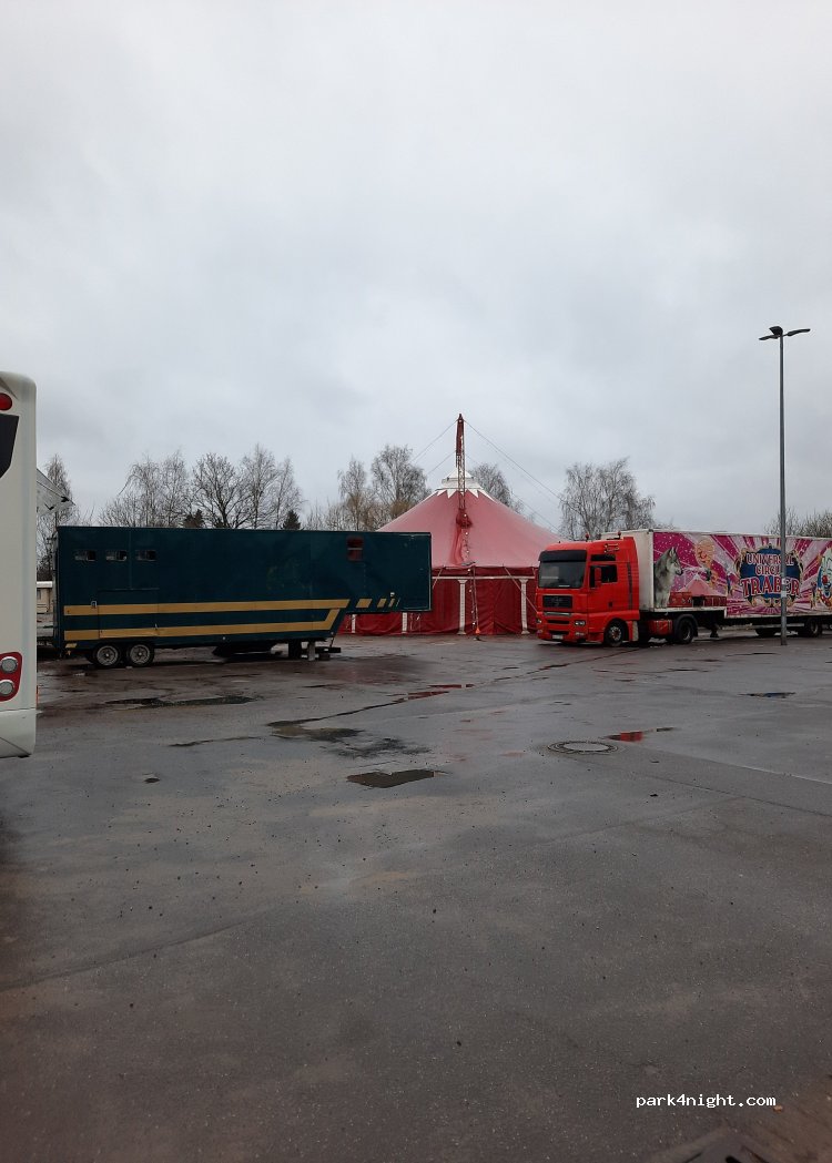 standen für eine Nacht direkt neben einem Zirkus. Immer noch genug Platz und doch bis auf die S-Bahn noch sehr ruhig. Für die Durchreise okay.