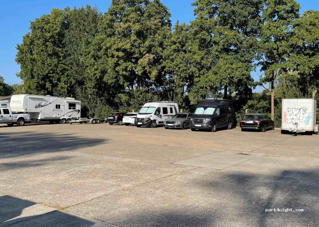 Parking très appréciable pour les gros camping car malheureusement travaux en cours à côté sur le trottoir donc bruit à partir de 6h. sinon nuit calme. Très éloigné de berlin centre 10km relativement plat, idéal si vélo, piste cyclable partout. nous sommes arrivés un dimanche il était complet de voiture, garé à l'autre plus haut pour la première nuit idem relativement calme.