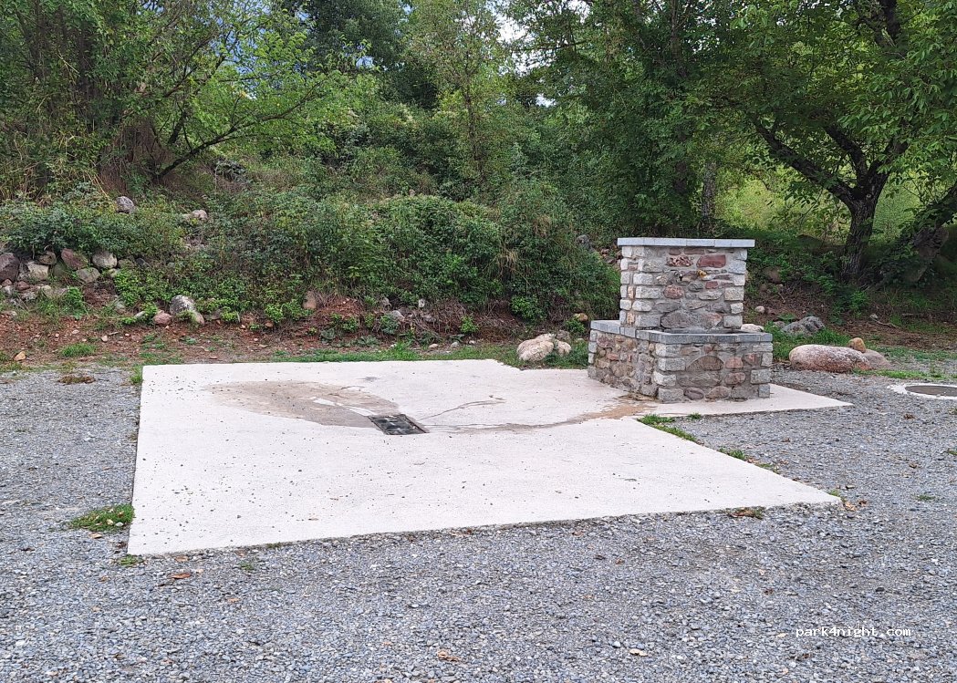 Mujeres: lugar seguro para dormir. Es precioso: limpio, en la naturaleza, con agua, árboles, el sonido del agua, mesas, barbacoa. Paseando unos minutos se llega al pueblo que es de piedra, muy agradable. Dormí con 4 o 5 camps más y a la mañana siguiente pude trabajar a la sombra. Hay una carretera secundaria cerca pero de noche no hay tráfico. Gracias por habilitar y cuidar zonas así.