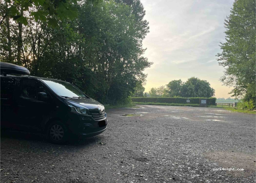 Grand parking avec plusieurs sentiers de randonnées. À proximité de Cologne (moins de 30min), quelques tables et poubelles sont disponibles. Passage régulier de promeneurs. Le soir il y a des avions qui passent bruyamment mais rien la nuit. Pas de toilettes