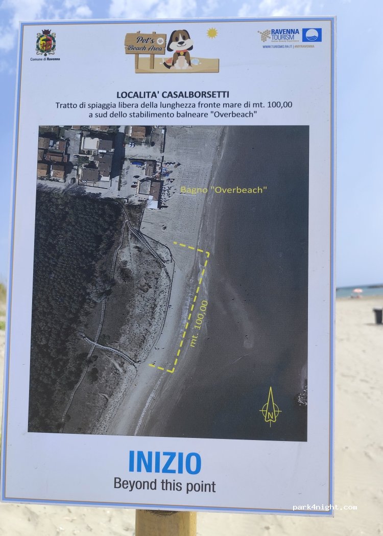 Sosta camper su prato. Quasi esclusivamente frequentata da equipaggi con cani. Spiaggia a 150 MT. Per chi ama andare in bici c'e la pista ciclabile che porta a Marina di Ravenna (7 Km circa) con passaggio fiume mezzo traghetto