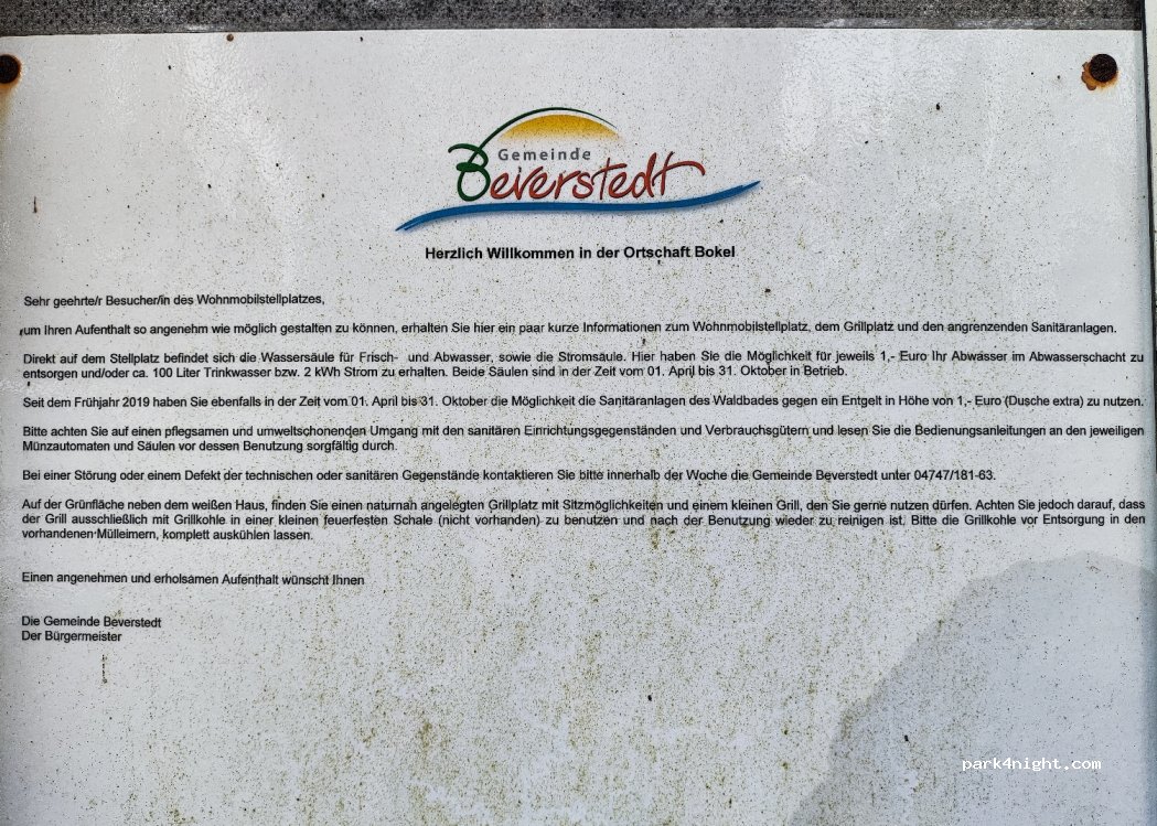Stehen mit noch 2 Womo's hier, alles Gut und Super Strom sowie Wasser gibt's auch noch. Zug hörbar, wenn Stört einfach weiterfahren. Kommen bestimmt wieder. Dankeschön der Gemeinde Bokel.