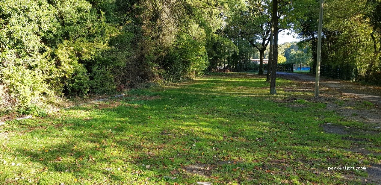 leuke kleine parking vlak tegen bosrand aan met stroom(1 euro per 2Kwh), ook water tegen betaling en bij het prachtige kleine zwembad (natuurlijk verwarmd) zijn toiletten en douche mogelijkheid, kosten: 1 euro. vlak bij de loopt een druk bereden dubbel treinspoor waar je weinig last van hebt. alles bijelkaar opgeteld wegen de nadelen niet op tegen de voordelen.