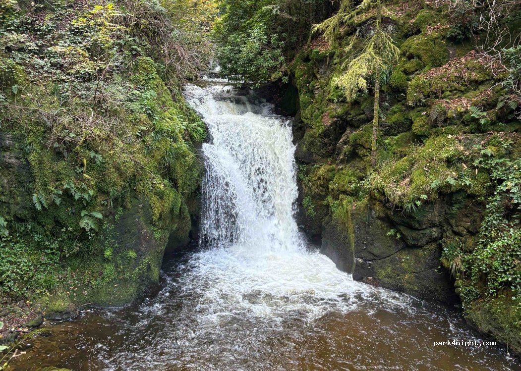 Niet 100% vlakke grond. Verbonden met de oprit van de herberg. Bij mijn overnachting waren er nog 2 andere campers aanwezig. overdag bij mooi weer passeren regelmatig wat mensen voor de wandeling naar de waterval. De waterval is mooi (niet zo groot) met mogelijkheid tot zwemmen.