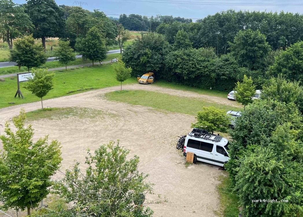 We stonden hier nachten in het weekend. Fantastische plek! Overdag komen hier families en hondenuitlaters. Met flinke muziekboxen, maar op de parkeerplaats nergens last van gehad. Ook niet toen rond 23 uur iedereen weg ging! Heerlijk rustig geslapen, aan het meertje ontbeten en geen spoor van de feestende kinders ontdekt, alles was opgeruimd.