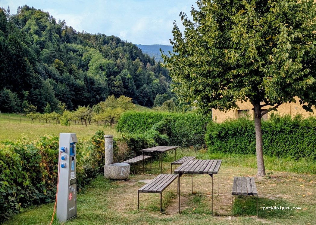 Perfect place to stop for a night. Free water provided and free electricity too. Felt really safe. Went for a swim in the Ruše swimming pool whilst I was there which was lovely. would definitely recommend