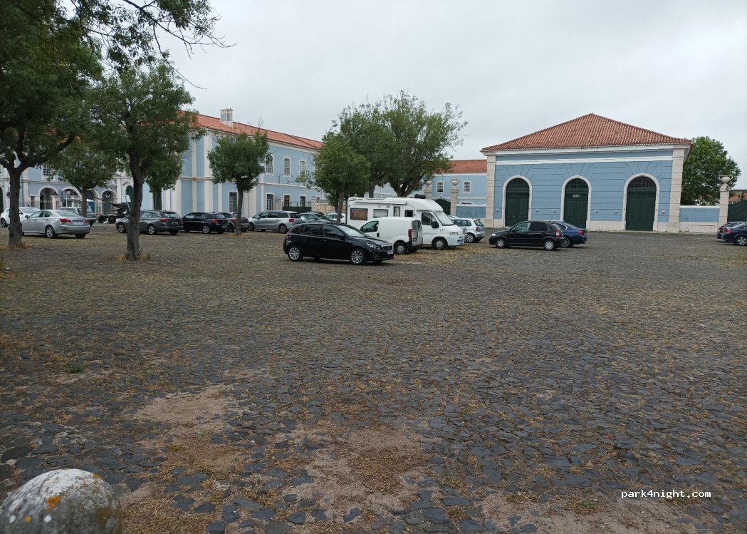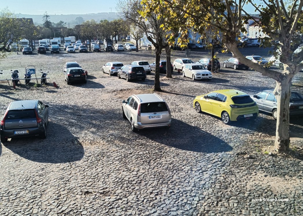 Bien meilleur que les 2 autres Parking en bas des tours. Endroit pavé, devant des bâtiments historiques, des arbres et de nombreuses places. Nous avons dormi sur place, plutôt bien, quelques bruits et aboiement la nuit ou au matin. N’hésitez pas à utiliser les app type Bolt pour aller sur Lisbonne en « Uber » avec des aller à 5-7€ pour 3/4 personnes. Le CC/AC est « sécurisé » pour la journée