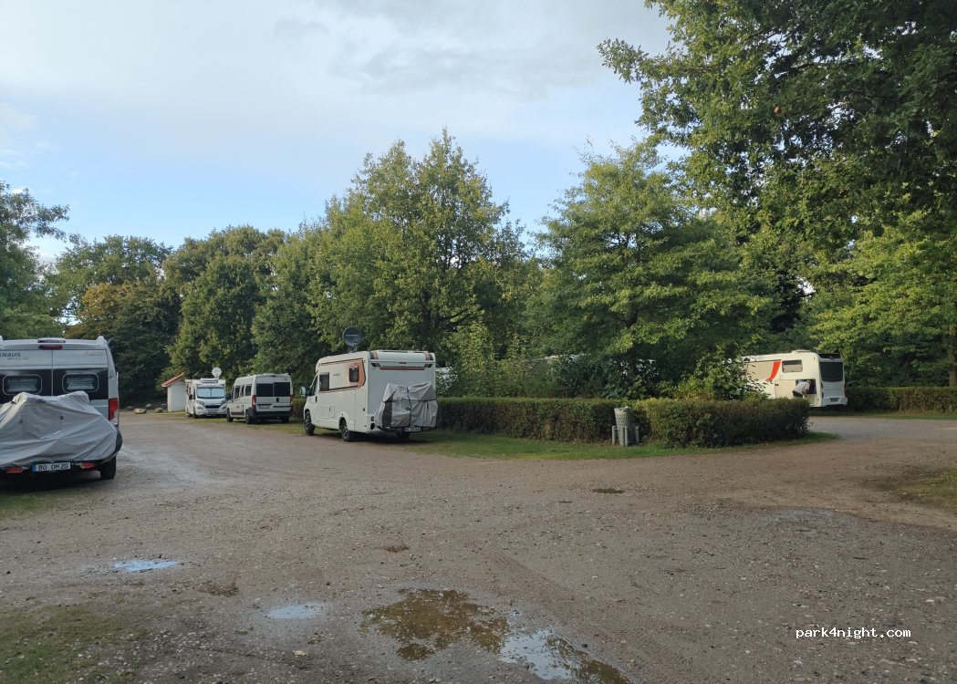 Une aire de parking pratique avec paiement en borde automatique quelle que soit l’heure ! Aucun service, propre, sur MAIS juste en face d’un magnifique complexe aquatique avec thermes, sauna, douches, toilettes, restaurant pour adultes et enfants, ouvert de 10 am à 10 pm. 5 euros de réduction avec ticket parking . Un choix de sauna époustouflant Une vraie belle étape entre Hambourg et le Danemark