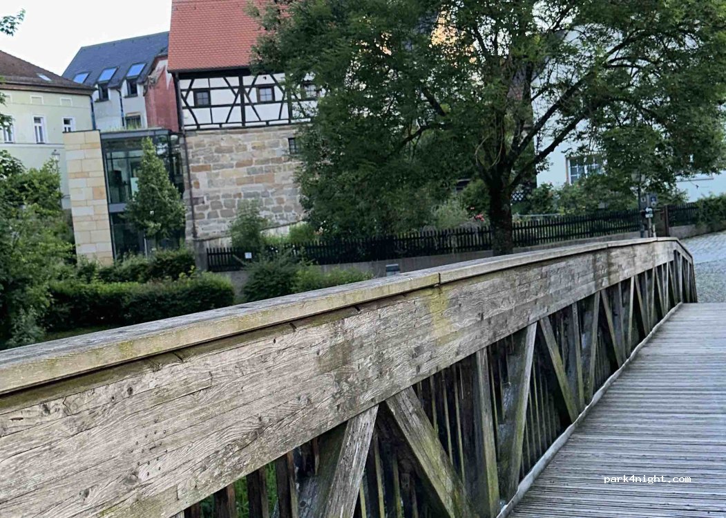 Free parking with paid services. 1€ for 8 hours electricity and the same cost to refill water and toliet. Machine is temperamental when emptying toilet. ( Enter coin, press button so it goes through and once the green light is on for the toilet, lift the lid first or it will go off an d lose your money) Next to train station (no noise) so convenient to get to Bamberg (Return 3.70€)