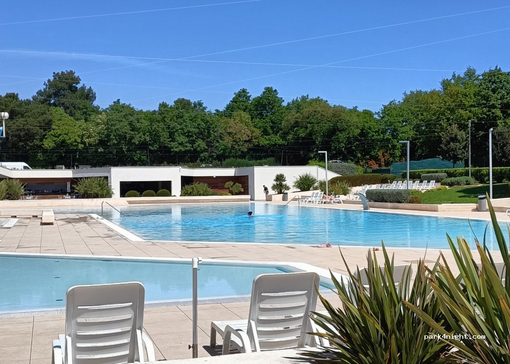 Great campsite, big site but doesn't feel problematic or busy. Swimming pool nice, great facilities, close to the sea, 5-10 mins walk where there is another pool. Restaurant on site. We were only meant to stay 1 night but ended up staying 3. €26 a night, 2 adults and MH. Would recommend. Umag walkable, nice place.