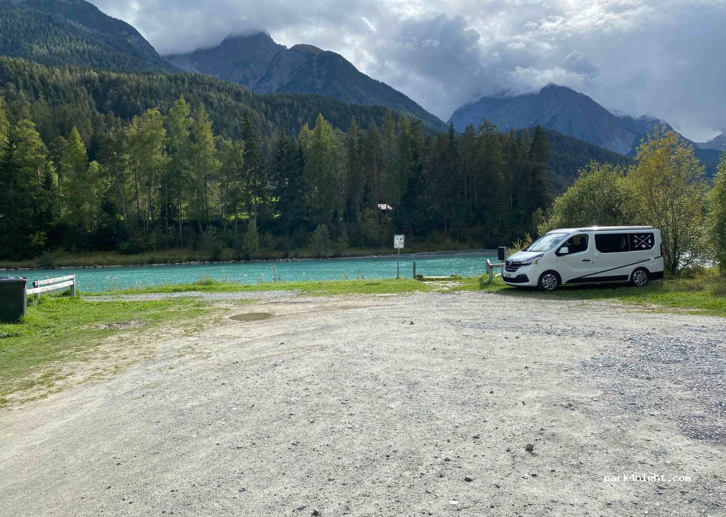 Directly by the river inn. Place for 2 vehicles. Gravel and grass (place for turning vehicles). Easy access. Trash can. Attention: the municipality of scuol does not authorize camping on its territory.