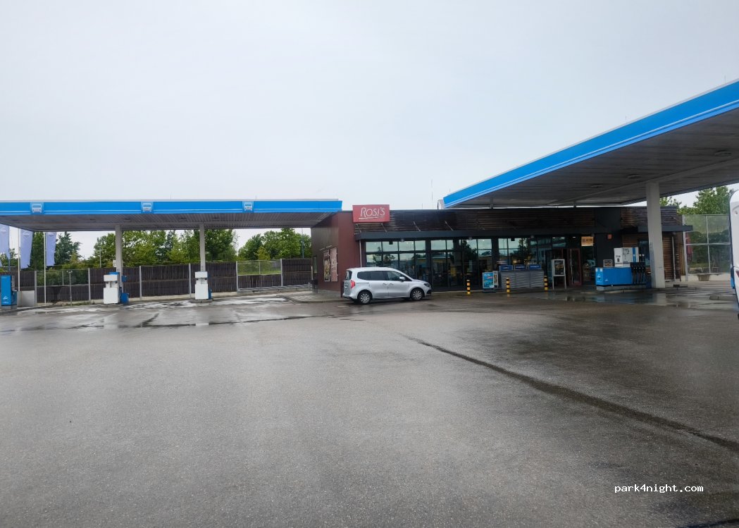 À la station-service d'Aral, vous pouvez vous garer à l'extérieur de Rosi. C'est payant mais si vous mangez au restaurant, alors gratuit. Un peu bruyant mais pas trop mal. Les douches sont propres et chaudes.