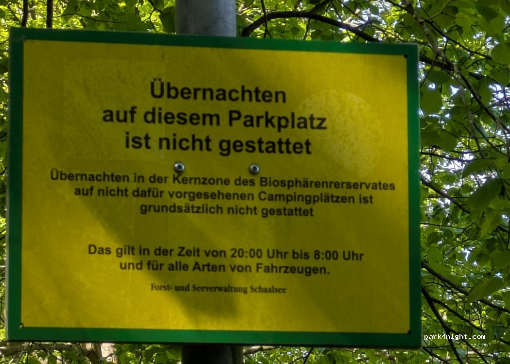 Parken in einem sehr ruhigen Wald, in der Nähe des Sees. Übernachten verboten