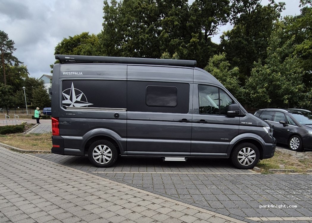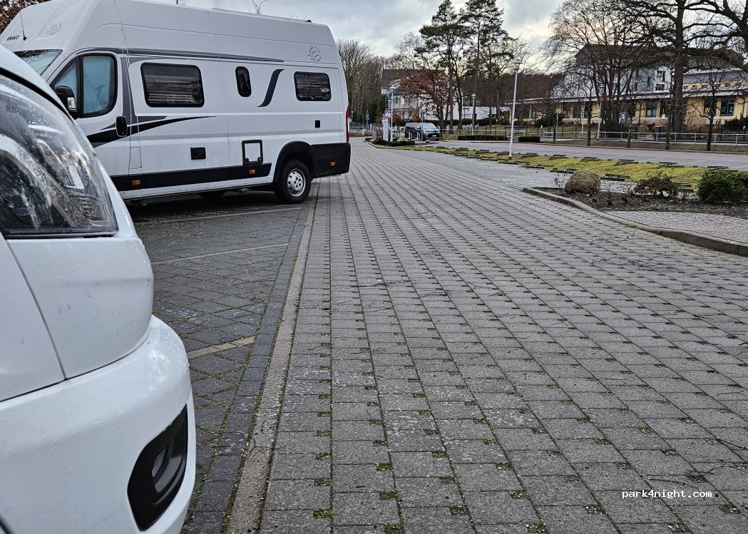 Obwohl der Platz für Womos ausgeschildert ist u. entsprechend höhere Gebühren anfallen (16 EUR/24h, nur Münzen od. per App, teuer) gibt es ausschließlich PKW-Parkflächen. Ruhig. Wir parkten unser knapp 7m-langes Womo rückwärts ein, reichte gerade so, um keinen zu behindern. Leider sind nicht alle Camper rücksichtsvoll u. parken ihre kürzeren Kastenwagen vorwärts, das Heck auf den Fahrtweg ragend.