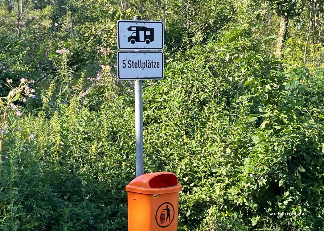 Offiziell 5 Wohnmobilplätze am nördlichen (Wald-)Rand des Freibadparkplatzes. Nachts relativ ruhig. Die Service-Leistungen sind auf dem Parkplatz verteilt.