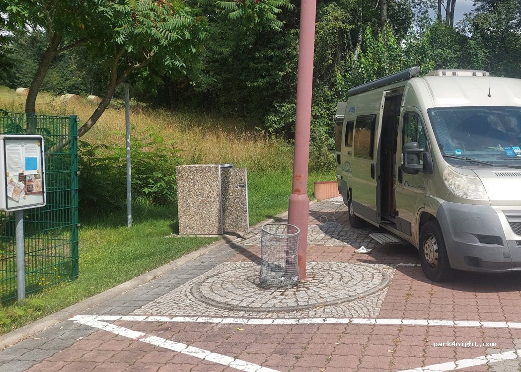 Ruhiger Stellplatz mit freundlichem Mitarbeiter des Freibades! Preis nur Parken über Nacht: 5 € Preis für Parken, WC, Dusche, Wasser und Strom: 10 €