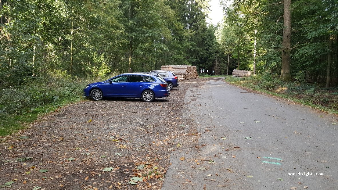 Petit parking de sentier au milieu de la forêt. Route voisine (actuellement bloquée de Stollberg) avec peu de circulation la nuit. Randonneurs, promeneurs et ramasseurs de champignons pendant la journée, très calmes le soir. S'il vous plaît ne laissez pas de corbeille.