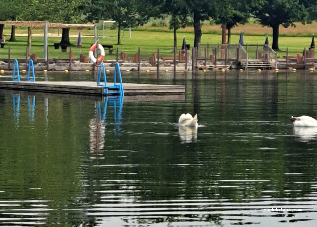 Strom und Wasser verfügbar. Direkt am See Eingang (kostet).