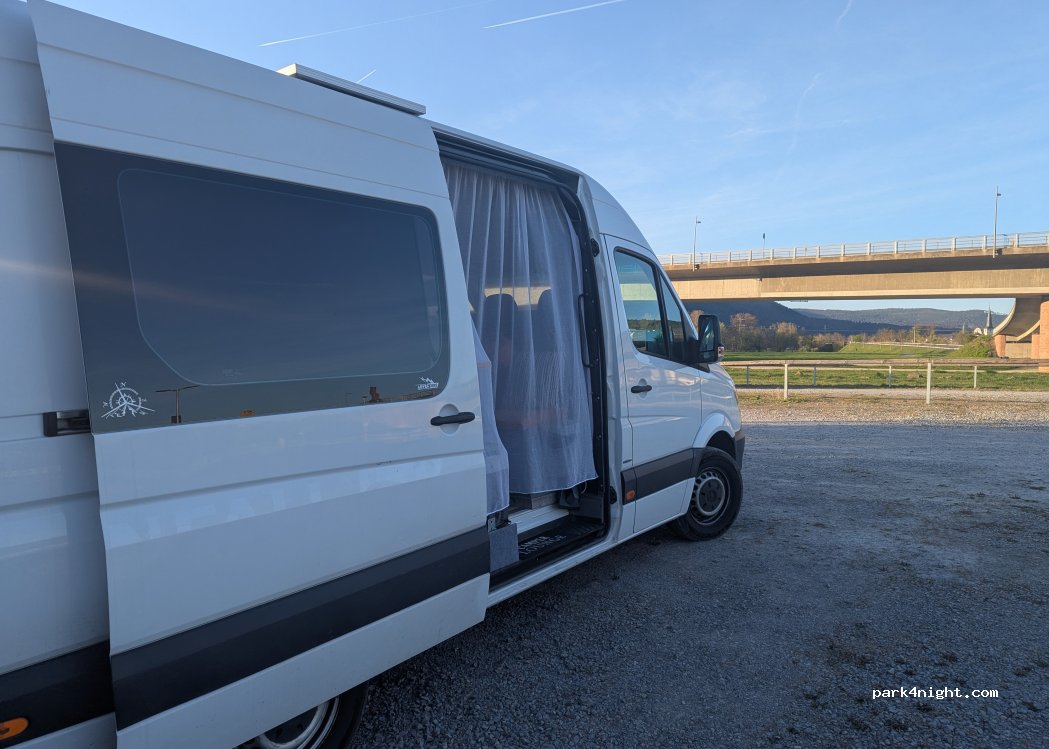 Netter Platz un die Stadt zu besichtigen 800m zu laufen ... Mit Hunden super viel wege zum Laufen ... Nachts ist es relativ ruhig zumindest am Wochenende Tags und früh morgens hört man den Verkehr auf jeden Fall . Negativ ist das es kein Schatten gibt und wenig Mülleimer . ansonsten ist es alles in Ordnung. gerne wieder wenn in der Nähe sind.