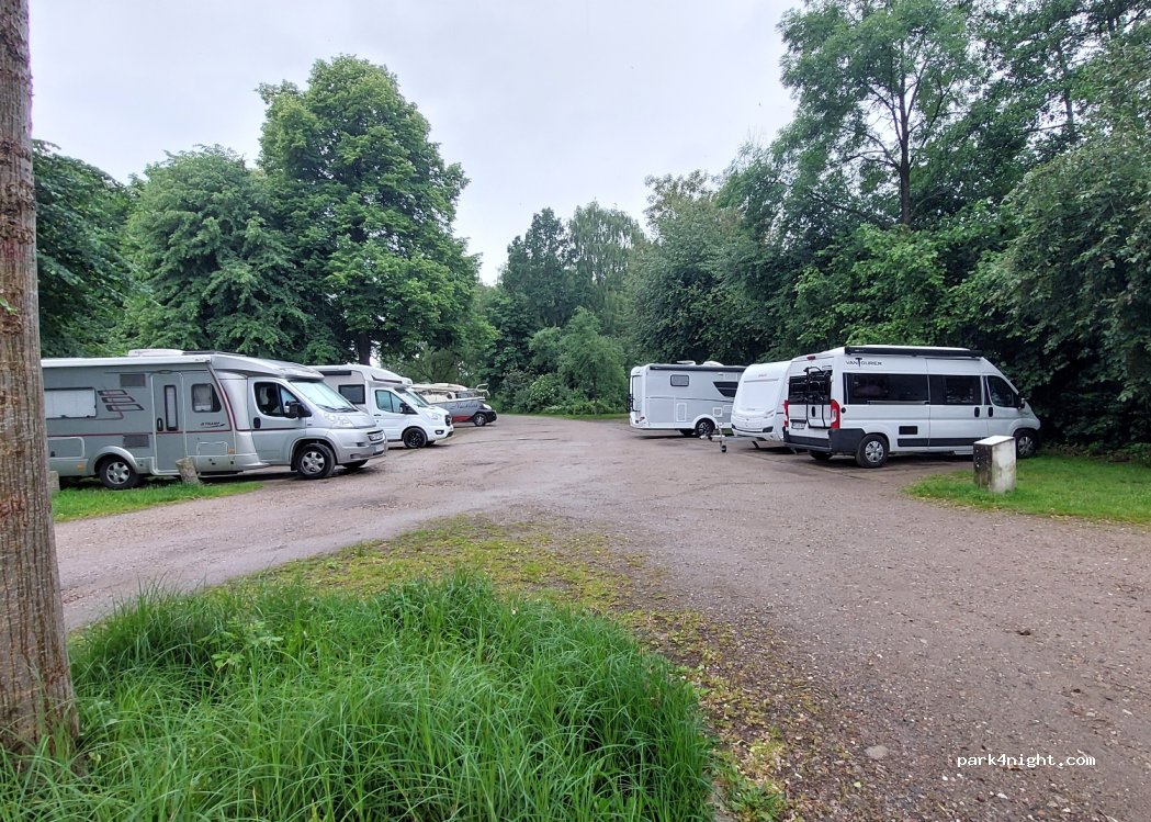 Great park up. No services but next to the lake and dog walks possible. Very busy during the day very quiet at night. Currywurst from the cafe is excellent.