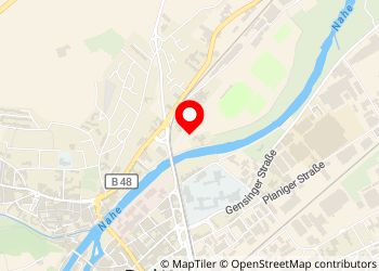 Le seul endroit possible où passer la nuit dans toute la ville ! Se mettre à l’écart des poids lourds, tout à fait à droite, à proximité du départ du chemin piétonnier qui longe la Nahe. C’est tout à fait acceptable.