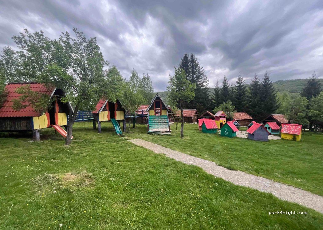 Sur demande, je suis autorisé à passer la nuit sur le parking du village de Etno Selo à Brezna. L'endroit est joliment meublé, un petit musée, un peu de divertissement Le restaurant est aménagé de façon intime. J'ai été reçu très amicalement. Le parc a aussi des toilettes. Presque toutes les places sont malheureusement sur une colline.