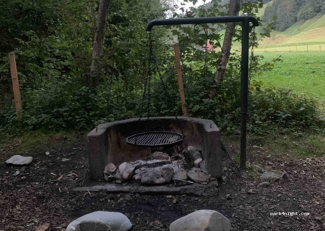 Attention : Des règlements communaux interdisent de dormir dans les véhicules aménagés dans la plupart des communes du pays d'Enhaut. Réveil matinal par la police cantonale. Environ 5 places de parking à côté d'une aire de pique nique avec table, nécessaire pour barbecue, poubelles et toilettes.