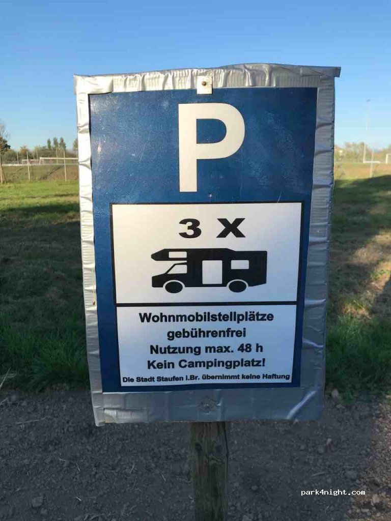 Endroit très calme, loin de la route principale, terrain de football à côté. 3 places et max 48h. La nuit les ruines du château de Staufen sont éclairées, magnifique.