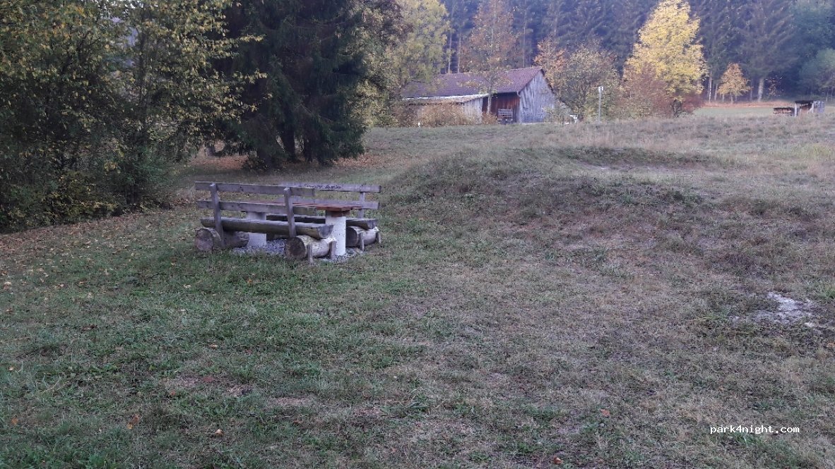 Very quiet place about 100 meters from the lake. There are playgrounds and recreation opportunities as well as beautiful hiking trails. The lake is well visited in summer. There are shops within a radius of about 1-2 km, such as Norma bakeries in Fichtenberg and so on in Norma. It is a very good butcher and a good integrated bakery. The locals are very nice and accommodating in many things. Parking is possible in the meadow between the trees and also provided. The way it is gravel or partially tarred. Electricity and water are not there. Possibilities for supplying water or empty toilets can be found in Gaildorf. Gaildorf is located about 10 km from Fichtenberg. There are also several shops as well as pharmacies. In general I can say that in this area Fichtenberg Gaildorf is a beautiful nature hike.