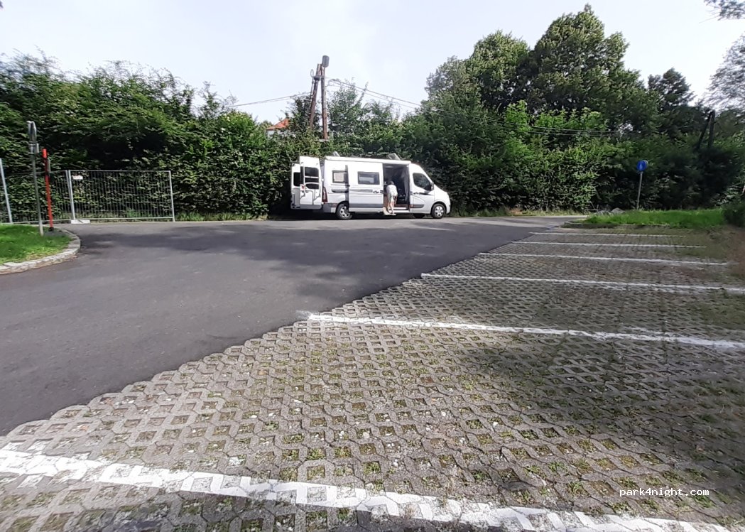 Quiet place. We slept in our car. There is a park zone on working days but at night staying there was free. A lot of spaces when it comes to regular vehicles. There is a gas station nearby with toilet. Highly recommended!