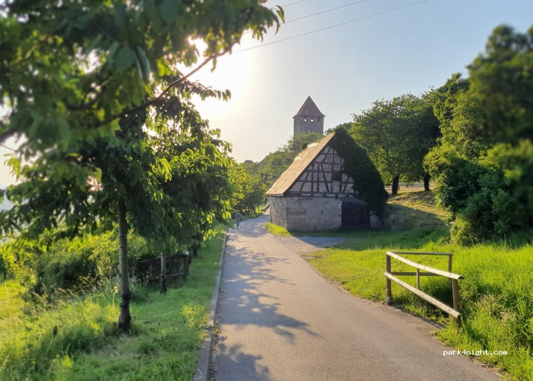 Parkplatz neben der Burg Lichtenberg. Herrliche Aussicht, sehr ruhig, vielfältige Wandermöglichkeiten durch die Weinberge, allerdings ohne jegliche Installationen.