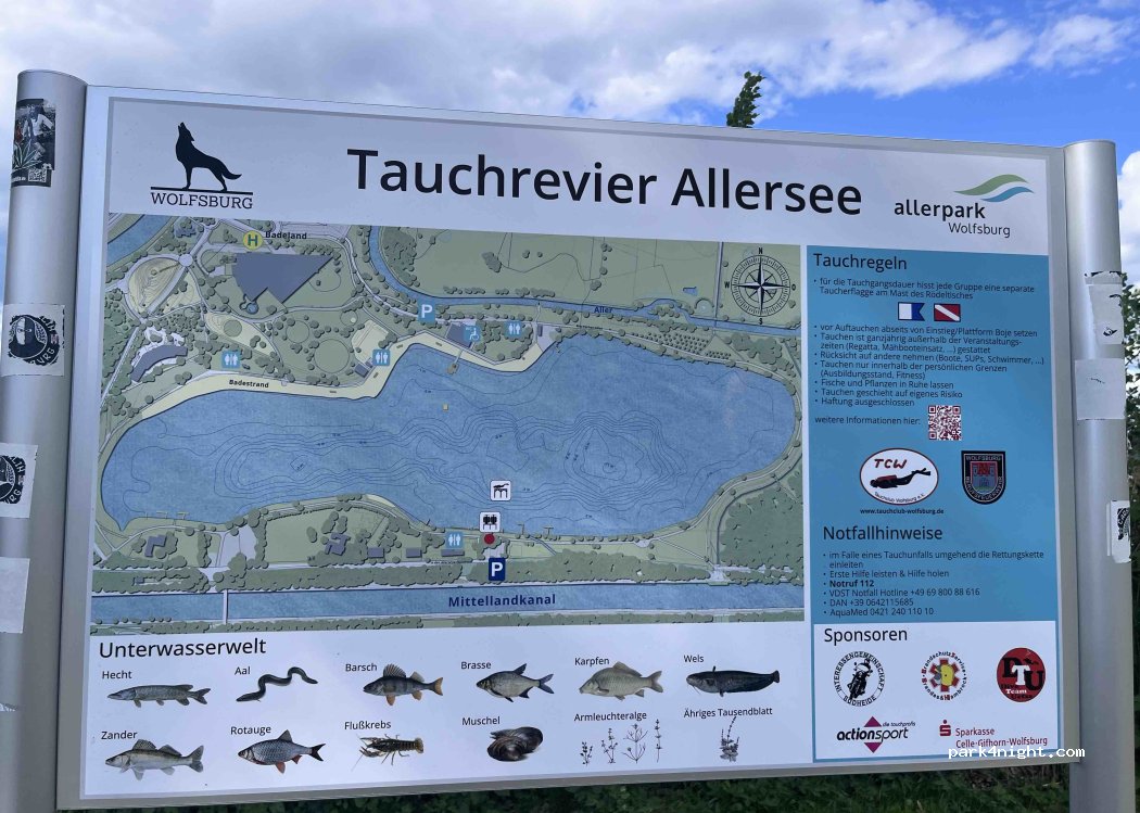 Aparcamiento directamente en la orilla del Allersee. Los aseos se encuentran a poca distancia (a la izquierda de la plaza junto al lago, abiertos de mayo a septiembre). Hay un camino circular alrededor del lago justo al lado del aparcamiento. El estadio VfL Arena, las tiendas de diseño, el Autostadt y el castillo se encuentran a poca distancia a pie. En verano, el lago está muy ocupado hasta la tarde, por la noche está tranquilo. El camino de acceso está cerrado entre 22 y 6!