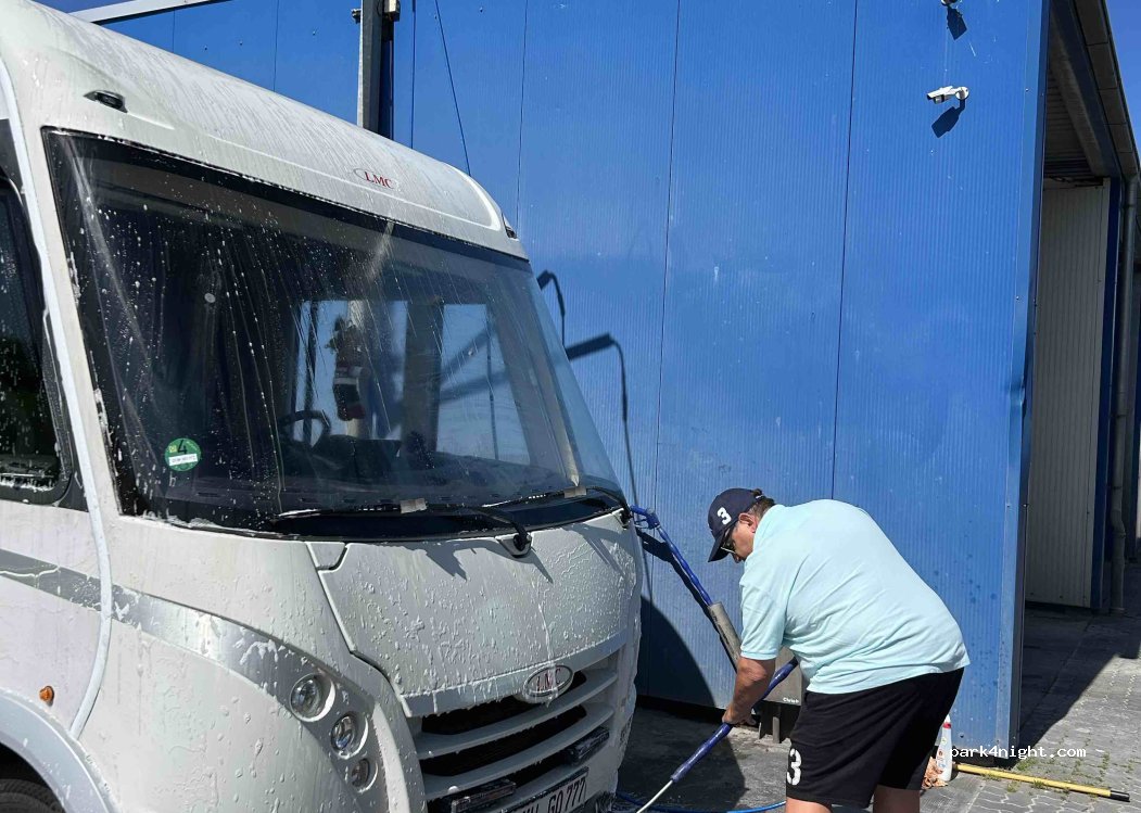 Grauwasser kann problemlos entleert werden. Frischwasser tanken ist eher ein gesundheitliches Risiko, da der Frischwasserhahn in direkter Nähe der Chemietoiletten-Entsorgung ist. Auf dem Platz befindet sich eine PKW Waschanlage und ein SB-Waschplatz (auch für hohe Fahrzeuge). Haben unseren Camper gleich noch eine Dusche gegönnt.
