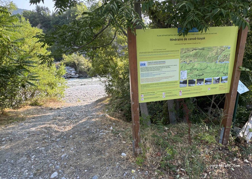 Services gratuits, c'est bien. Mais pour dormir, on ne sait pas vraiment pourquoi on paye 4 € (à aller régler au camping à côté). D'autant que l'accès au parking et aux services a été fermé par des blocs de béton, ce n'est pas vraiment pratique. Accès au Var juste en traversant la route, ça c'est sympa (arrivée des canoës)