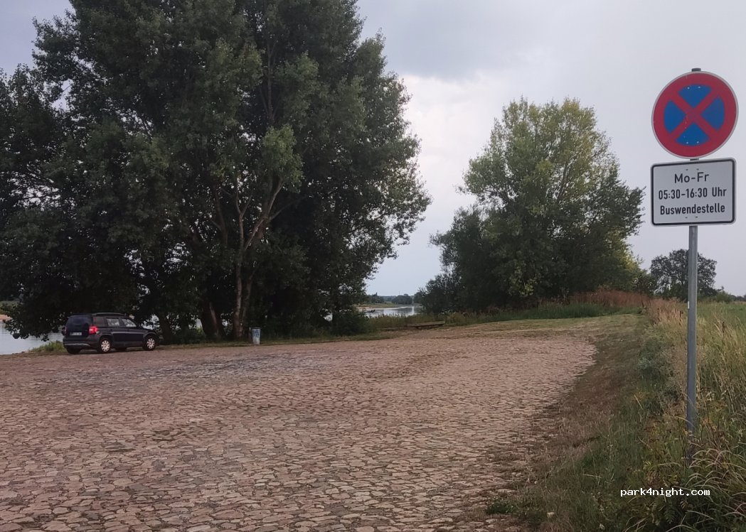 Schöner ruhiger Platz. Direkt an der Elbe. Achtung: links von der Straße darf nicht geparkt werden, da es sich hier um Privatgelände handelt. Auf dem Buswendeplatz ist es kein Problem am Rand zu stehen.