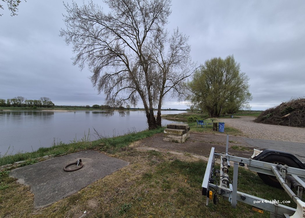 Schöner Parkplatz mit direktem Blick auf die Elbe. Auf der linken Seite ist das parken verboten, rechts ist genug Platz und es gibt auch Mülltonnen. Das Übernachten ist hier nicht explizit erlaubt oder verboten.