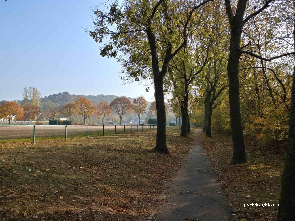 Parking at a sports field. Within earshot of train and street. A few minutes from the barefoot path. Very quiet at night. No facilities. Supply and disposal for a fee in front of the official pitch at the spa possible.